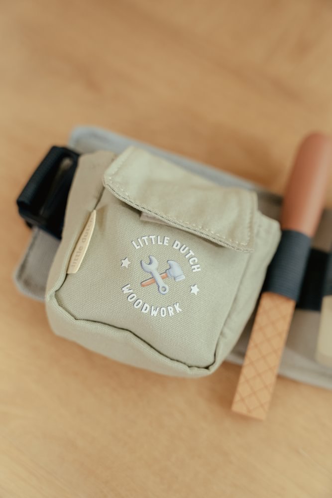 За малките строители, този дървен колан за инструменти е истинска необходимост! Регулируемият колан винаги приляга удобно и е пълен с пет различни инструмента, като чук, отвертка и гаечен ключ. Идеален за ролеви игри и развиване на двигателни умения. Комбинирайте с работната маса и кутията с инструменти за цялостно работно пространство. Готови ли сте да строите и ремонтирате?