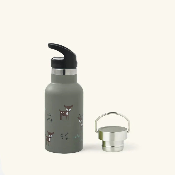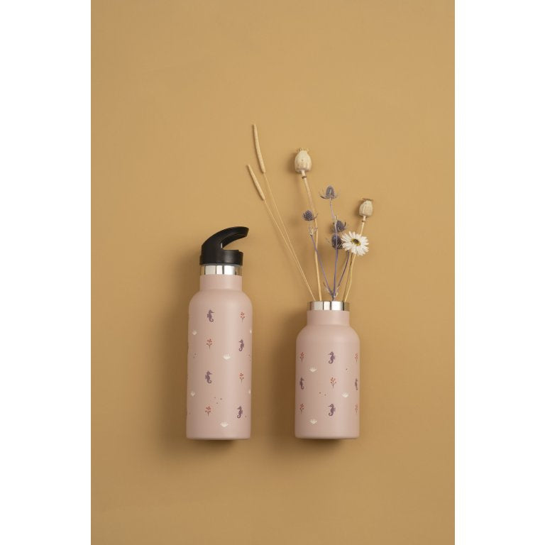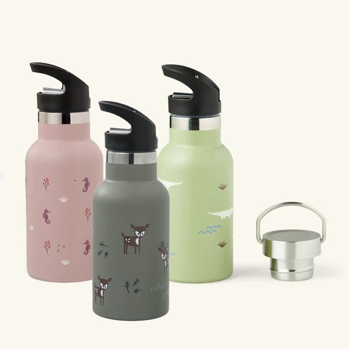 Идеален за деца, термосът е с вградена сламка. За училище или разходка, с две различни капачки. Той има двойна стена от неръждаема стомана и държи вашата напитка топла или студена в продължение на много часове.