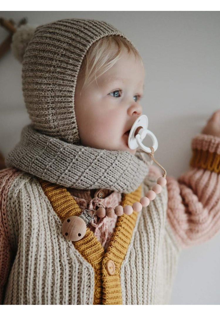 С нашия клипс за биберони със силиконови и дървени мъниста можете да се сбогувате с изгубените биберони! Улеснете родителството си още сега с този незаменим аксесоар.